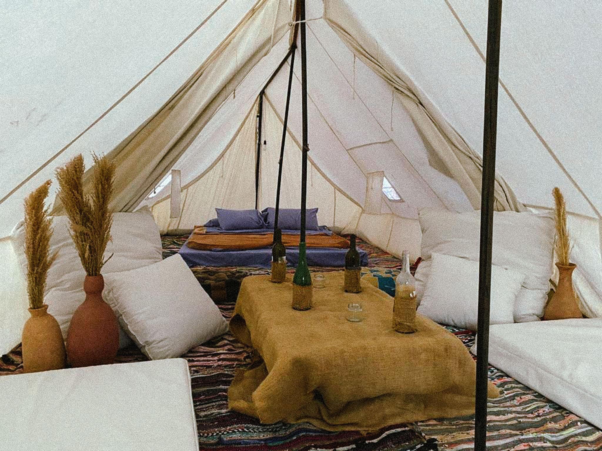 Our 4mx4m tents offer a cozy glamping ambiance for those seeking a comfortable desert experience.