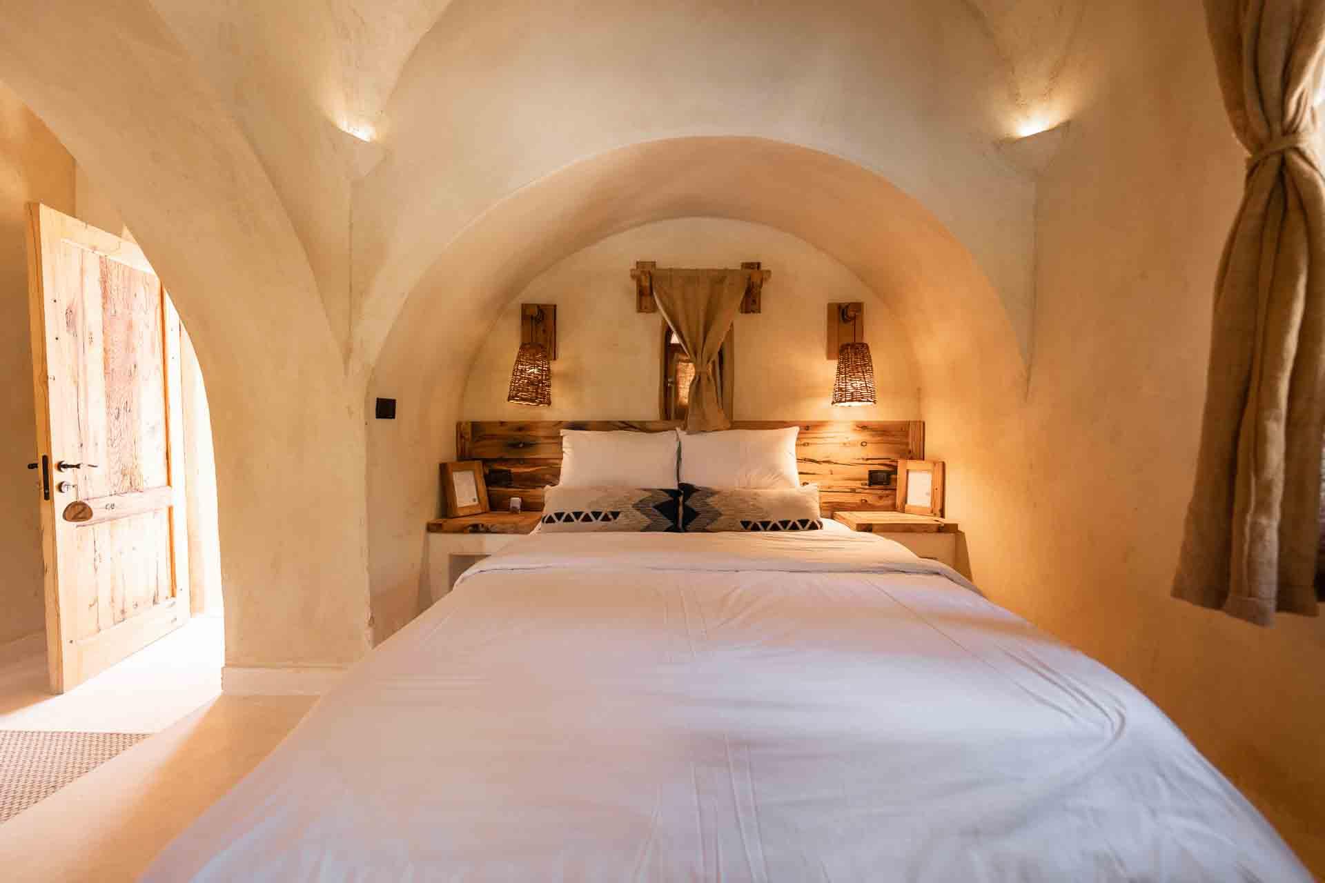Tzila Lodge has eleven unique rooms, each designed and beautifully furnished with the element of ancient motifs and traditional techniques reflecting Egypt’s wealth of inspirational culture and heritage. Domes, arches, thick walls, and absence of cement keep the rooms cool during the summer and warm during the cold winters. The rooms’ layout are spread in an Omda style house. Each room has a distinct layout but all offer the same traditional vibe.